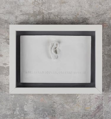 Escultura gesso, com moldura. Fotografias Atelier Iva Viana
