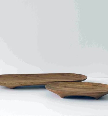 Tabuleiro com pés produzido manualmente de madeira autócne por Woodcraft Gudlia.